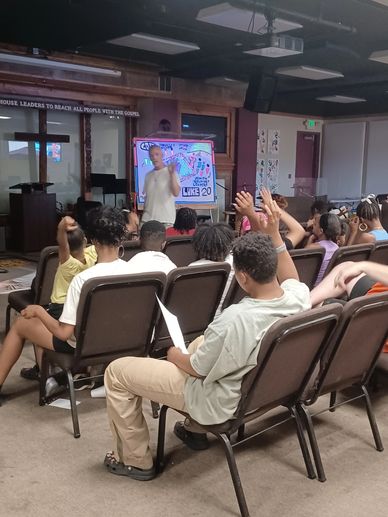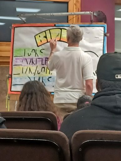 Via sketch board drawing, VBS Watts Powerhouse Church learns a few basic Bible Facts.