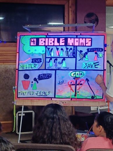 Frank shared the Gospel via sketchboarding the stories of 4 Special Bible Moms